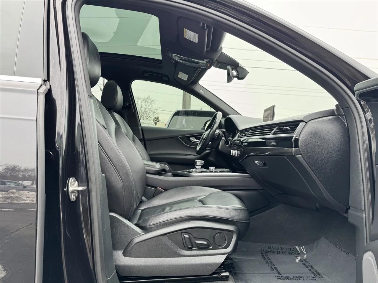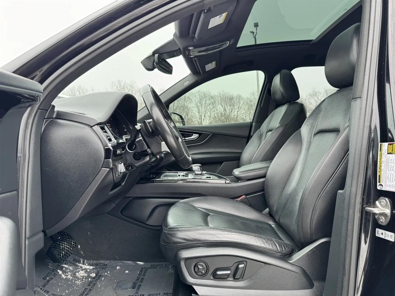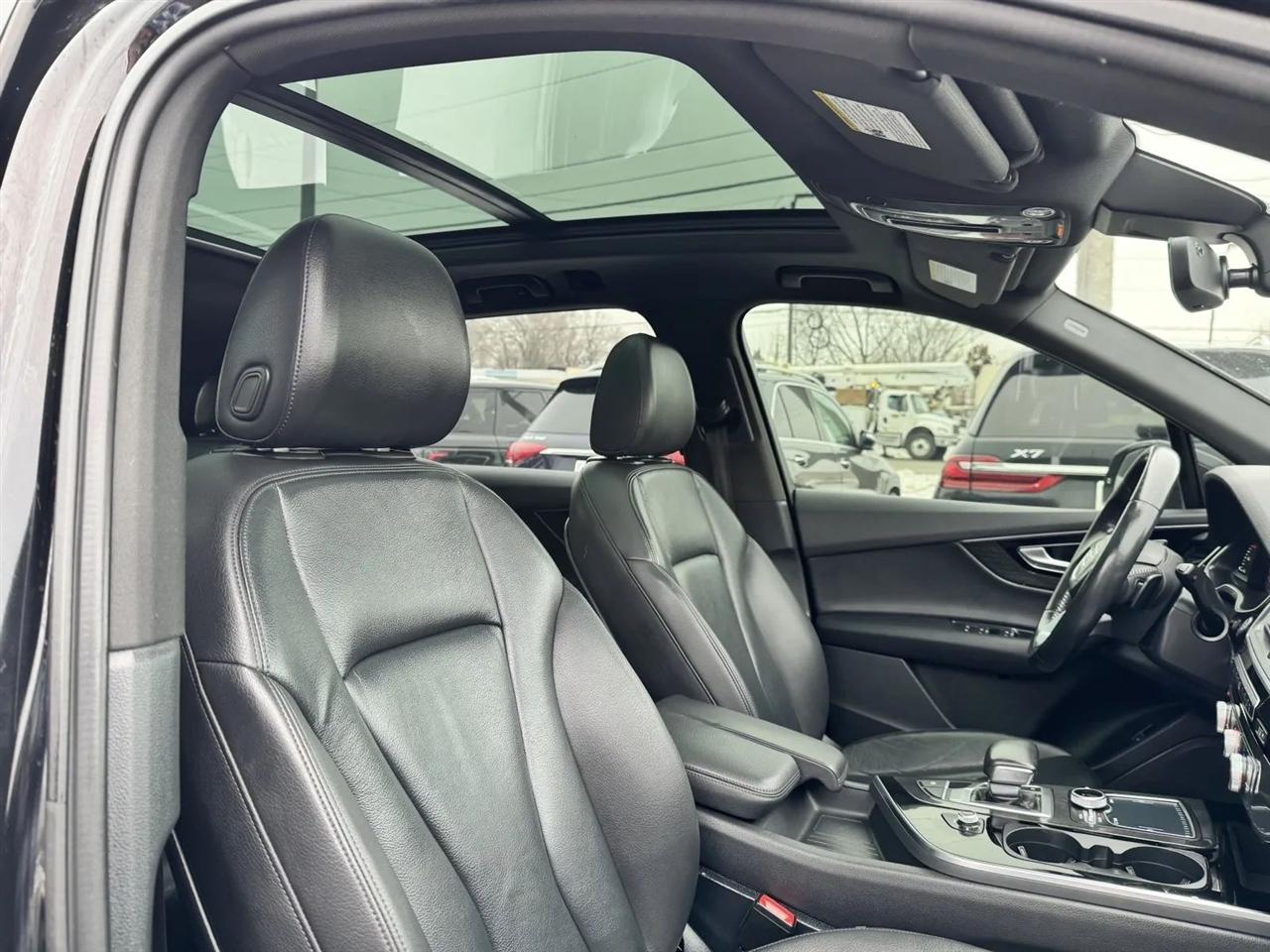 Buckle up for a thrilling ride in this Night Black 2017 Audi Q7! This luxurious SUV is more than just a means of transportation - it's a statement. With its sleek design and bold presence, it's sure to turn heads wherever you go. Picture yourself cruising down the highway, enveloped in the plush leather seats, while the panoramic sunroof lets in just the right amount of sunlight. The powerful engine purrs as you effortlessly glide around curves thanks to the responsive handling and dynamic steering. And don't even get me started on the stellar sound system - your favorite tunes will come alive like never before. Whether you're running errands around town or embarking on a weekend road trip, this Audi Q7 will elevate every driving experience. So why settle for average when you can have extraordinary? Elevate your driving game with this stunning Night Black 2017 Audi Q7 - the road is calling, are you ready to answer?